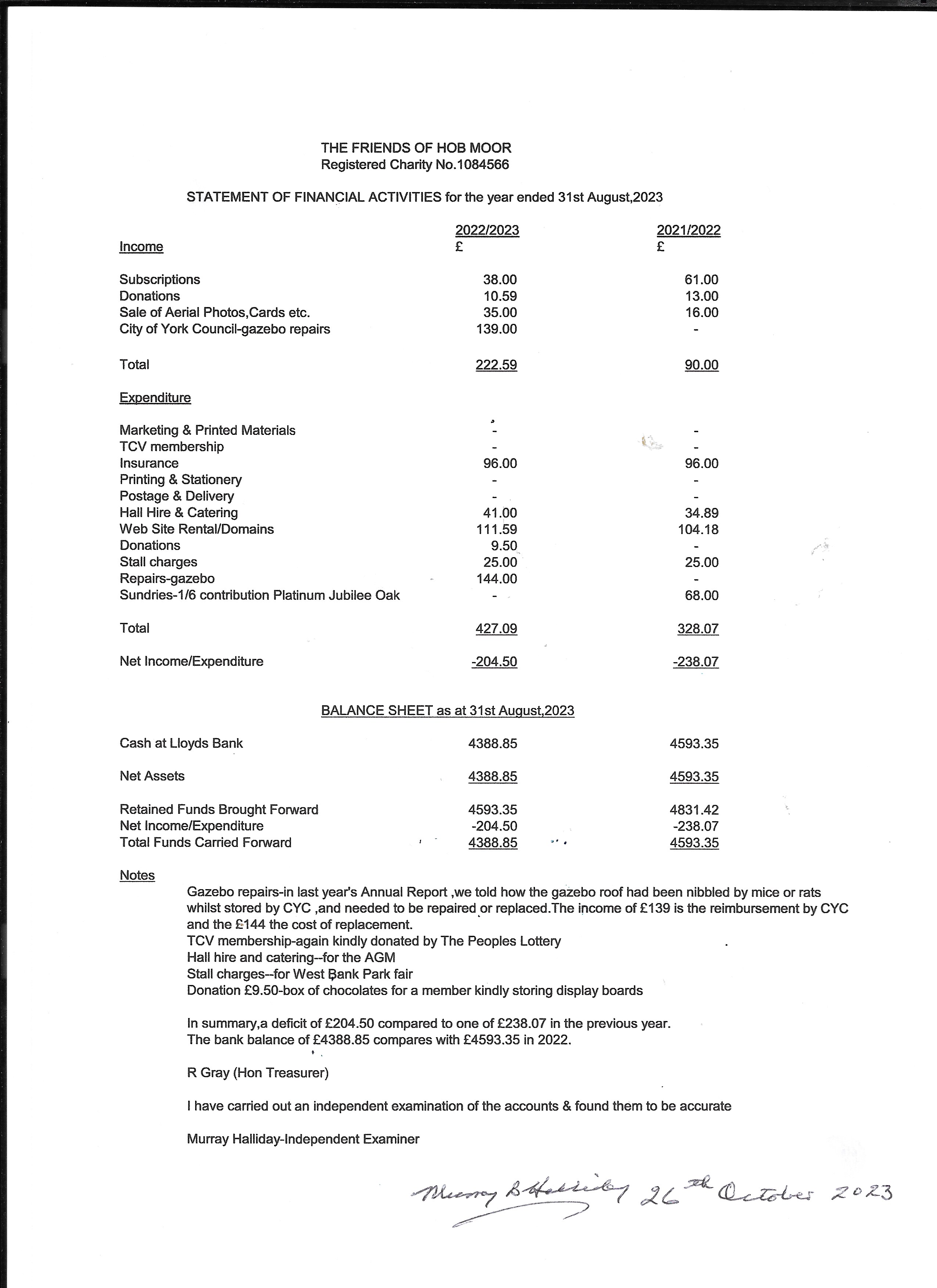 The Twenty Fourth Annual General Meeting of the Association of the Friends of Hob Moor will be held at 7.30 pm on Thursday 30th November, 2023 at West Thorpe Methodist Church, West Thorpe, York YO24 2PW. Parking is available.
