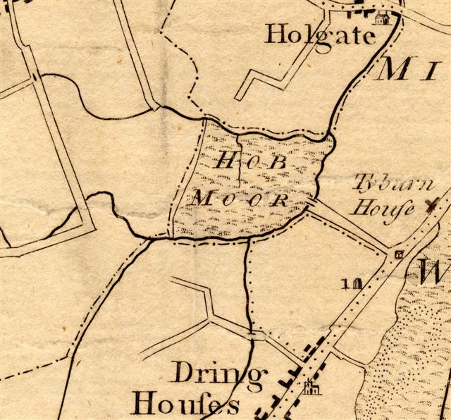 Hob Moor is part of a large, flat area drained by a network of becks and ditches, parts of which are now culverted underground. Streams run on 3 sides of the main part of the moor as can be seen from Francis White’s map of 1785.