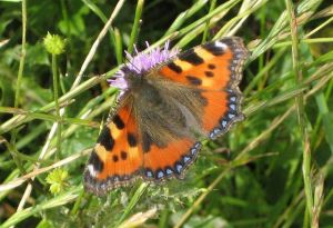 As might be expected, the flowers and hedgerows on Hob Moor attract many butterflies. On a warm sunny day, the hedgerows are full of butterflies flitting from flower to flower. Although the thistles and nettles are seen by many as weeds, they too attract butterflies and their caterpillars. The stinging nettle for example, will be home to caterpillars of the comma, peacock, small tortoiseshell and red admiral.