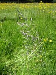 The swards here reflect the reseeding carried out after Kelsey’s Pond was backfilled in the 1950s and are dominated by perennial rye-grass with abundant cocksfoot, rough meadow-grass and white clover. There are some buttercups, and nettles and creeping thistle grow in patches; common vetch (above left) is present and annual cranesbills and lesser trefoil (above right) are found near the paths.