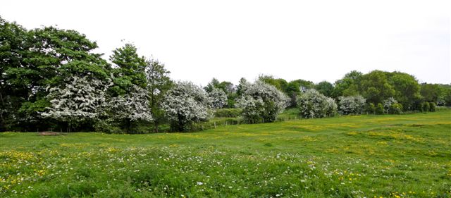 The hedge along the northern boundary of the Moor is mainly hawthorn but also contains ash, blackthorn, crab apple, elder, English elm, wych elm, holly, poplar, silver birch, yew and some garden shrubs.